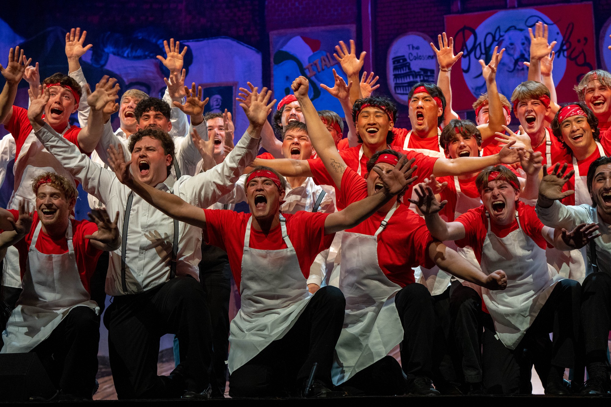 Tau Kappa Epsilon built its show around the familiar setting of a New York-style pizza shop, using costumes to create a believable and immersive environment.