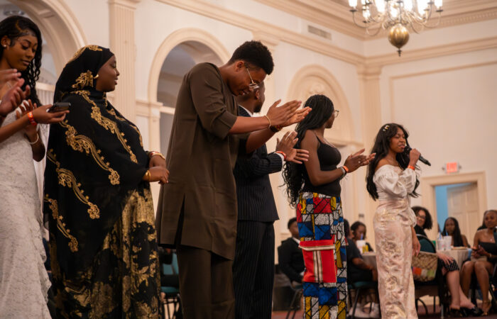 Attendees were called up to show off their traditional wear and clothing during the Afrique event at the Sub on Friday night. Caleb Garcia | Photographer