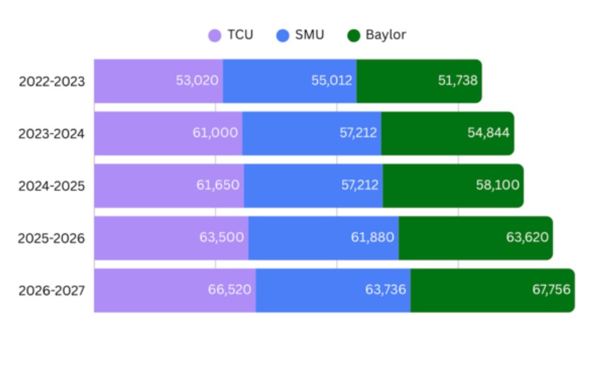 Baylor’s decision to increase tuition by 6.5% followed a 9.5% increase in the 2024-2025 school year. Baylor’s operating budget for the 2025-2026 school year was $995.8 million, and will decrease by $35 million in the 2026-2027 school year. Reynolds explained that Baylor operates on a three-year budget model, which provides the administration with better trend analysis going forward, and that the tuition increases are seen as a way to balance next year’s budget.