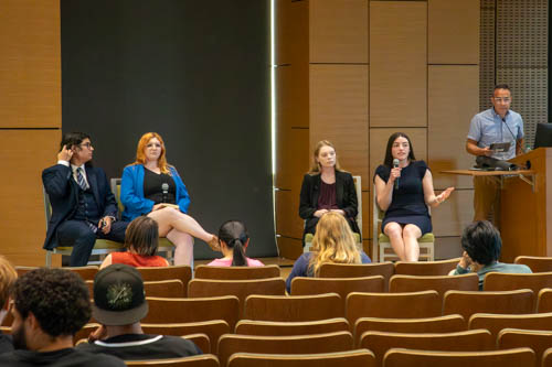 The debate featured two panelists from the College Republicans and two panelists from the College Democrats, as well as the moderator, who fielded audience questions coming via a QR code posted at the beginning of the event. Upon hearing the question, each organization had approximately two minutes to answer.
