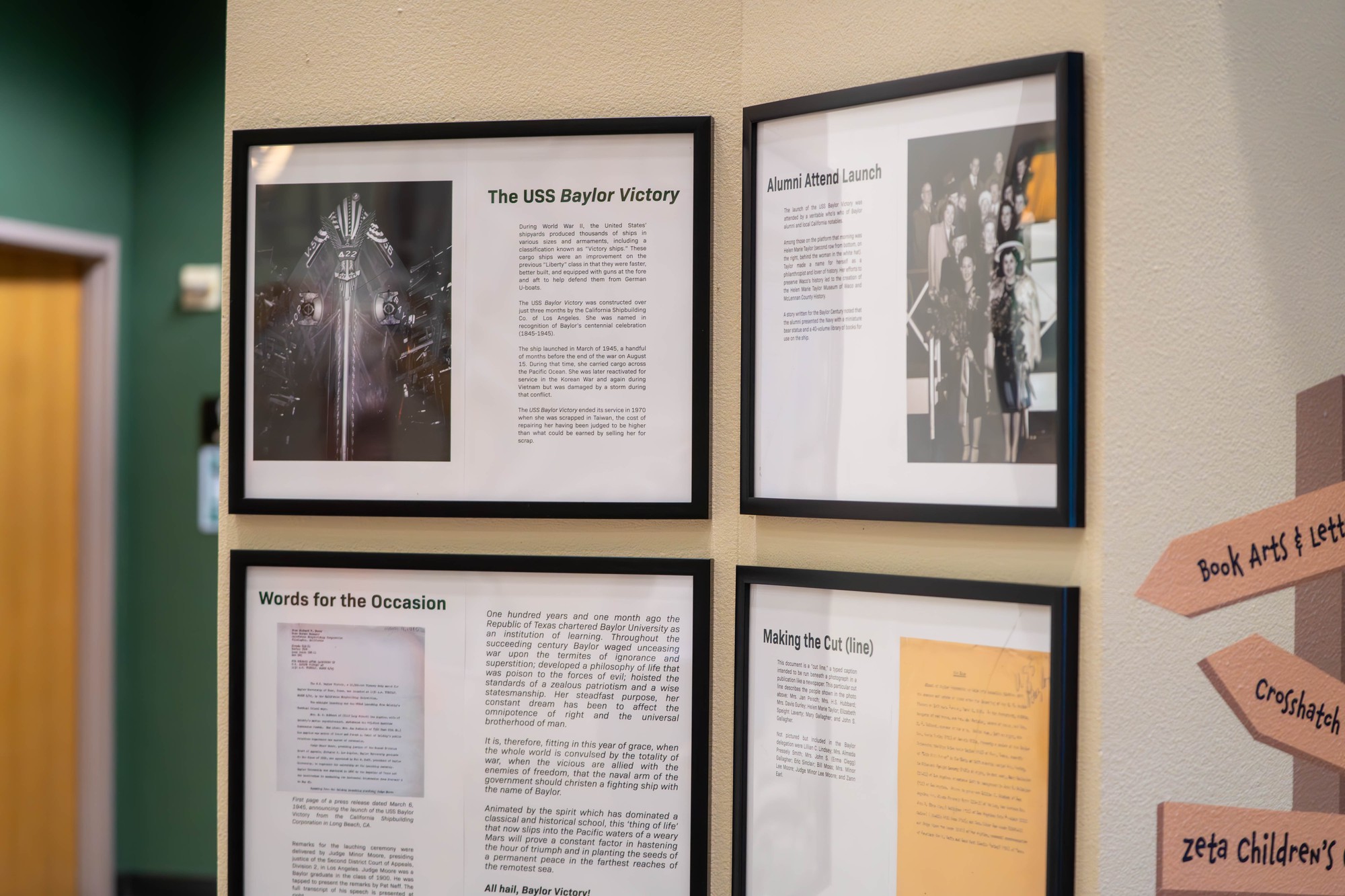 In addition to the traveling exhibit, Baylor Libraries incorporated a Baylor-specific ancillary display featuring pieces from the university’s archives, placed at the entrance to Jones Library.