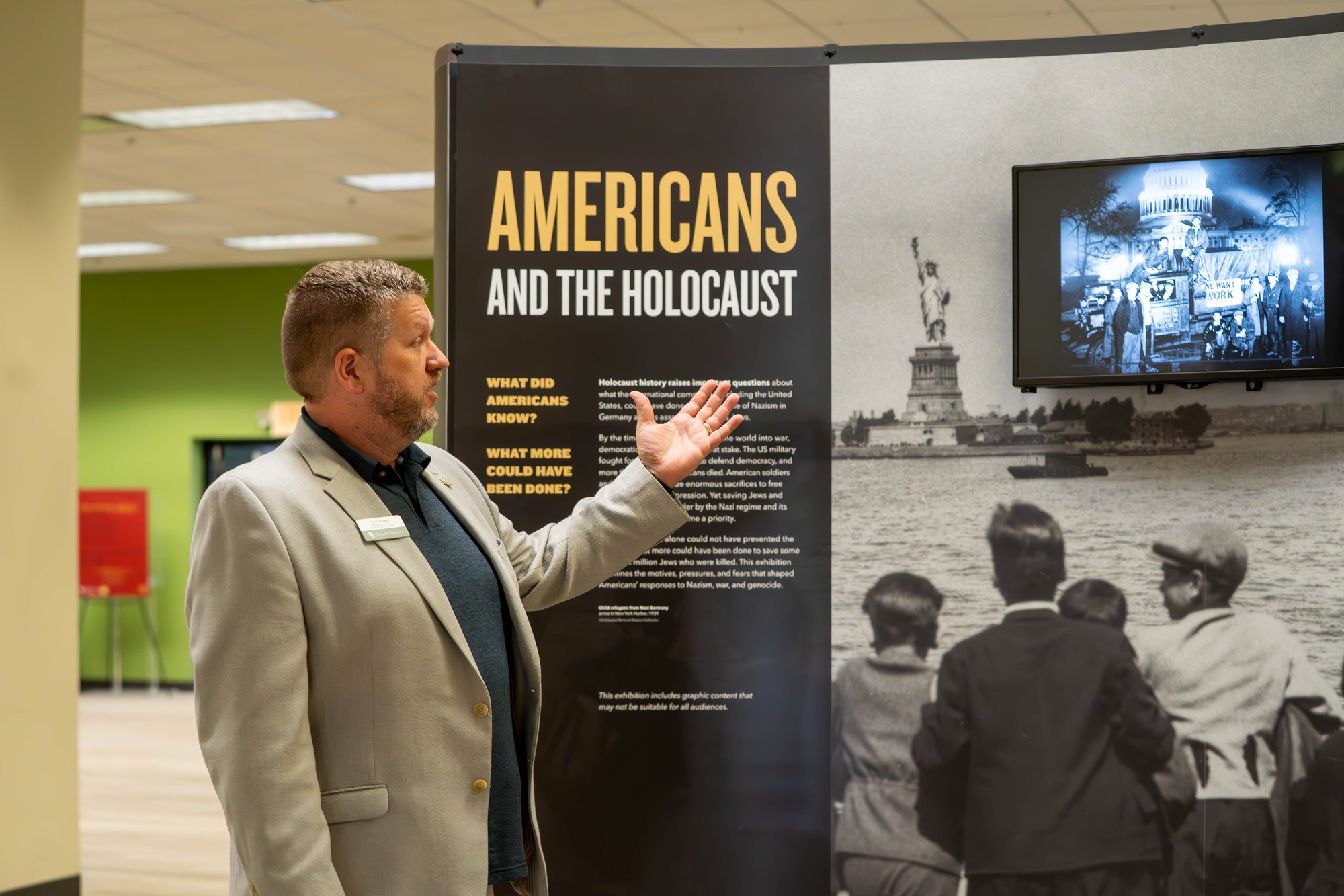 The preparation included Ames attending training at the Holocaust Museum in Washington, along with Semrau coordinating with faculty across departments and organizing a series of public programs to accompany the exhibit.