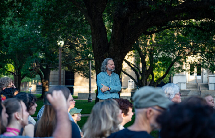 Dr. John Singletary encouraged students to share their thoughts to the crowd during the All Are Neighbors' prayer vigil Wednesday evening. Sam Gassaway | Photo Editor