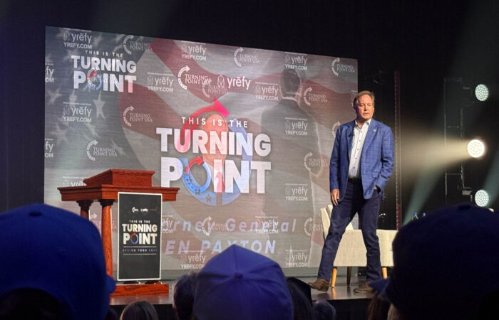 Attorney General of Texas Ken Paxton opens up Turning Point USA's "This is the Turning Point" tour at Waco Hall on Wednesday evening. Caleb Garcia | Photographer