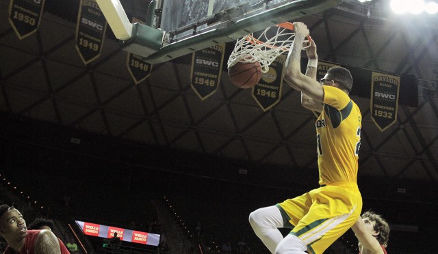 Baylor sophomore center Isaiah Austin set the tone early with a massive block on the first play of the game for Baylor. The Bears scored the first eight points of the contest, including two jumpers from senior power forward Cory Jefferson.