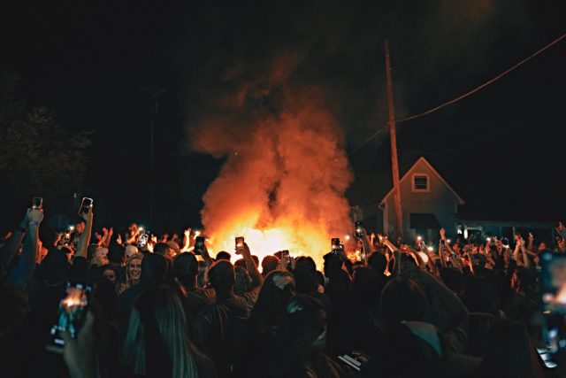 The south end of 10th Street flooded with people celebrating the national championship win Monday night as the Waco police department and the fire department supervised the masses from afar.